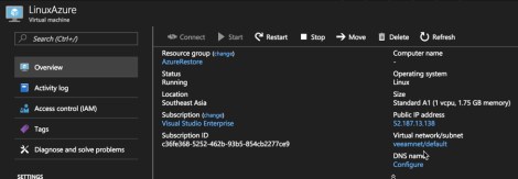 Depending on network and VM size it can take a while before the restore will complete. In my lab, it just below 25 minutes. After login to Azure console, I could see new VM under new resource group in running state.