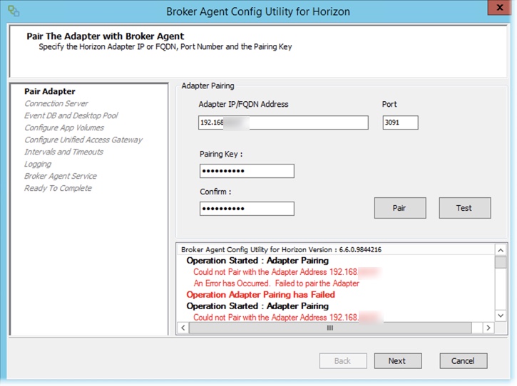 But most strange behavior was with the pairing key which needs to be set at the vRealize Operation Manager under Administration > Solutions > VMware Horizon. When you configure the adapter and you set the pairing key, you cannot change it in case you forget it. You need to delete old adapter settings and setup new with a new pairing key, to be able to use it. There is no error message which informed what is the problem so we cannot confirm that the pairing key is incorrect.