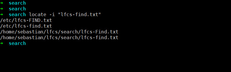locate command has much fewer parameters than find command, but as well allows us to search for files case insensitive when add -i to the command.