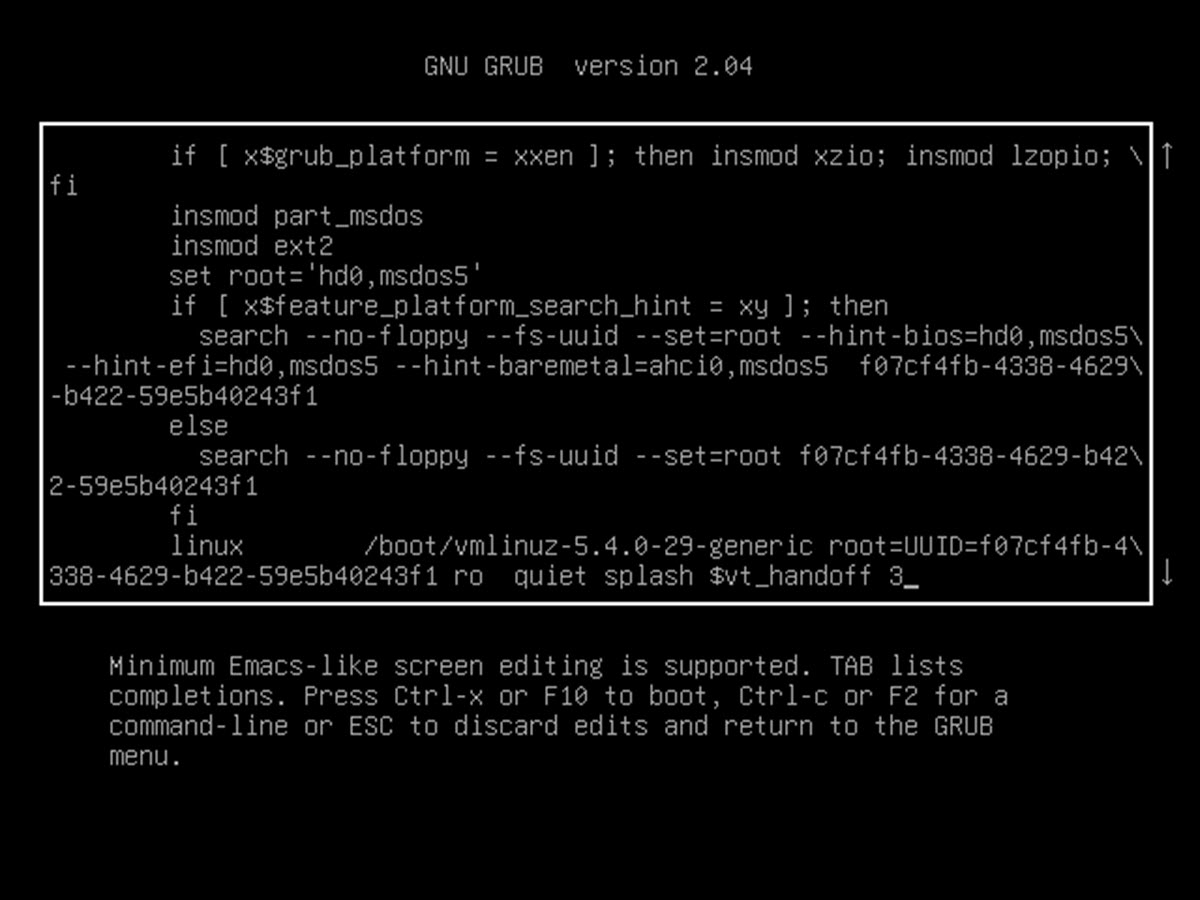 We can change the operating mode during the system boot-up. On the Ubuntu system, we need to press the shift key to enter the GRUB menu, where we select the entry for our system and press e. Next, we scroll down until line starting with linux, and at the end of this line, we add the runlevel number for example 3, and we press the F10 key to boot up. When we are done using the runlevel we set in the GRUB menu, we reboot the machine to boot into default one.