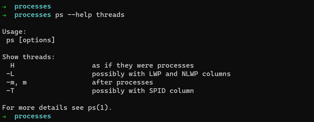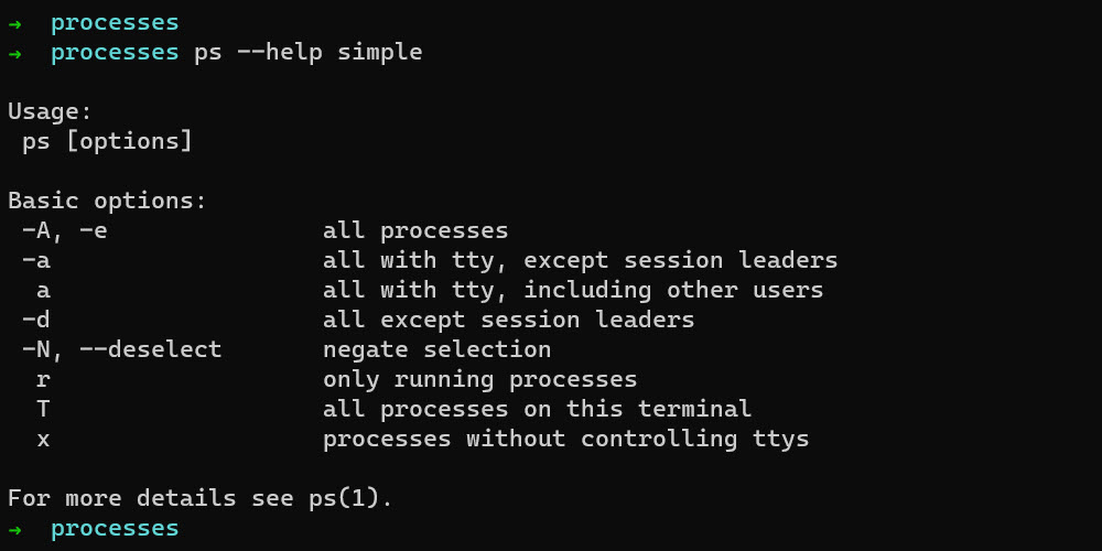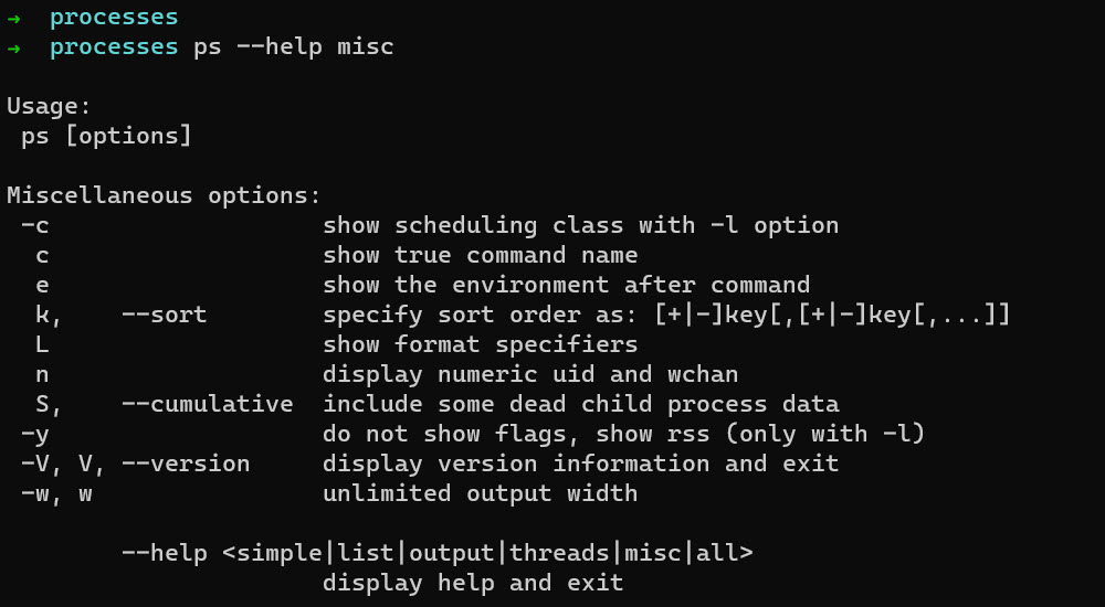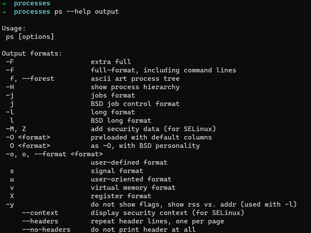Running ps command with –help option give us idea what kind of information about processes we can retrieve and how we can modify the output.